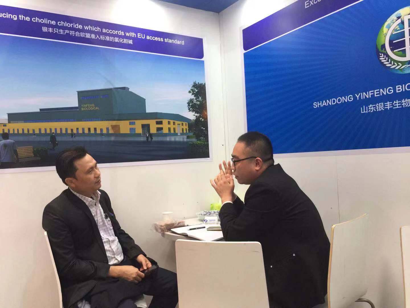 針對意向客戶提出的膽堿產品質量,劉洪新總經理和王新忠經理從銀豐膽堿的產品質量定位給客戶認真分析講解。山東銀豐嚴格秉承歐盟“飼料即食品”的經營理念,以“銀豐只生產符合歐盟準入標準的氯化膽堿”為產品質量定位,嚴格執行氯化膽堿國家標準和歐盟飼料衛生指標限值的雙重標準,嚴格控制三甲胺殘留、黃曲霉毒素、沙門氏菌、二噁英、農藥殘留和轉基因物質,強化產品的衛生指標,達到出口歐盟準入標準。