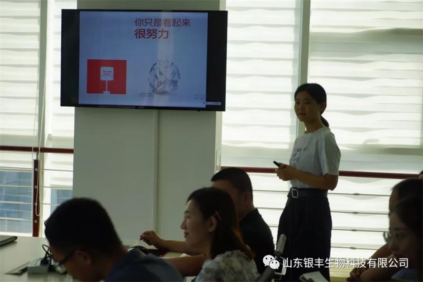 山東銀豐“創建和打造學習型團隊”系列活動,為員工打造個性化自主閱讀平臺,提高員工閱讀興趣,分享閱讀體驗,進而提升個人修養,拓展知識層面。7月5日,銀豐生物營銷中心,本次山東銀豐“創建和打造學習型團隊”系列活動為大家分享閱讀感受的有:國際貿易部鄒玉嬌經理的《你只是看起來很努力》、國內營銷部高宏軍經理的《走進蘇軾》、國際貿易部鞏欣經理的《非凡領袖—任正非》。