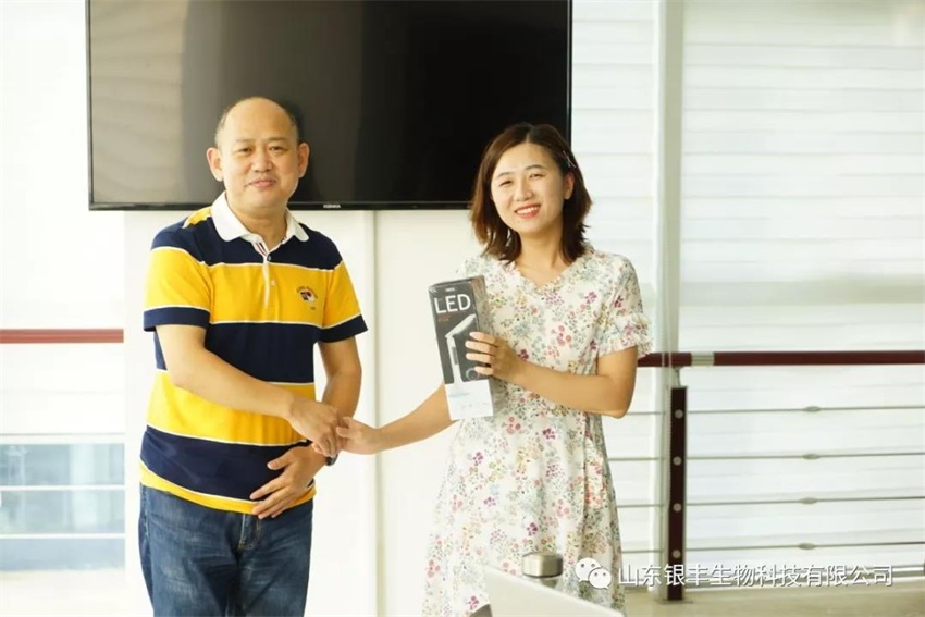 至此,山東銀豐第一期“創建和打造學習型團隊”系列活動已圓滿結束,銀豐生物總經理劉洪新為往期演講優秀者頒發了紀念獎品,并以此鼓勵所有人堅持學習,不斷提升自身知識拓展。山東銀豐作為一家優秀的中國氯化膽堿生產商,不僅苛求與對產品的高度把關,對營銷團隊的塑造也逐步成為銀豐的優良企業文化,在今后的工作中,“創建和打造學習型團隊”系列活動還將繼續開展,全體員工為銀豐之崛起而學習,強銀豐之翼,健品牌之魂,前路昭然,你我共進。