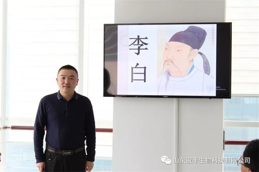 李白是我國詩詞文化中一顆燦爛的明珠,他將我國古代詩歌藝術推上了頂峰,對后人的影響也是深遠的,他的詩豪氣縱橫,灑脫不羈。一首“君不見,黃河之水天上來,奔流到海不復回”。筆酣墨飽,文筆大開大合,包含詩人奔涌跌宕的感情激流,在高宏軍經理憑借其深受的詩詞底蘊,精準獨到的見解,為大家慷慨激昂的講述了李白如戲劇般的一生經歷,并與大家共同分享詩仙李白為后人留下的經典佳作,不禁感嘆李白詩中豪放飄逸的風格,變幻莫測的想象,清水芙蓉的美,正如余光中所言:“酒入豪腸,七分釀成了月光,余下三分嘯成劍氣,秀口一吐就半個盛唐”。