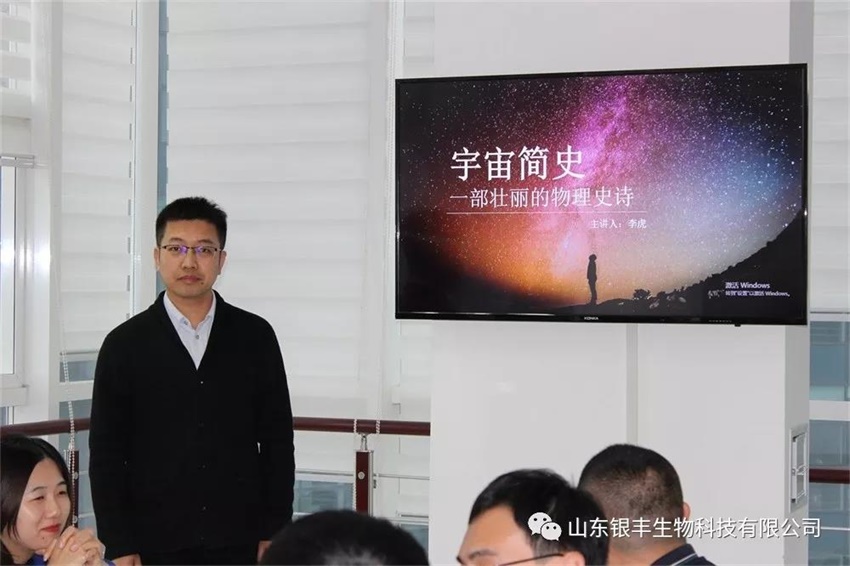 本次山東銀豐“創建和打造學習型團隊”系列活動為大家分享閱讀感受的有:國內營銷部高宏軍經理的《李白》、營銷服務中心陳慧經理的《社交禮儀》、國內營銷部李海波理的《交響樂樂隊編制介紹與音樂賞析》以及國內營銷部李虎經理的《宇宙簡史》。