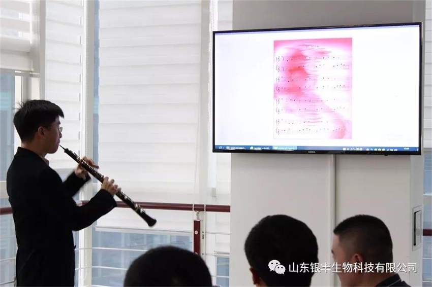 音樂是人類共有的精神食糧,它作為藝術中最具感染力的一種表達方式,猶如一泓清泉,滋潤人的心田,而交響樂更是音樂中的音樂,是音樂中神圣的殿堂,它具有博大、高遠、深厚的精神意境。身為音樂系雙簧管演奏畢業的李海波經理,從專業的角度為大家詳細介紹了交響樂中各種樂器的音色音律及表現的藝術意境。同時,精選的交響樂選段也帶領大家切實感受到交響樂給心靈帶來的極大震撼,在講課最后,李海波經理現場表演的雙簧管獨奏也讓大家過足了音樂癮,悠揚的旋律縈繞于耳邊,回味悠長。