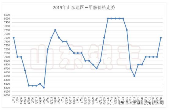 再來看另一種原料三甲胺。在山東銀豐9月28日的行情資訊文章中有過敘述:從相關渠道了解到山東華魯恒升給個別客戶掛牌價格已經上調到了7500元/噸,但是實際成交價具體能到多少,還需視十一之后安陽九天、魯西化工兩個廠家的生產供應情況而定。十一假期之后,華魯恒升不出意外的將所有客戶的掛牌成交價都上調到了7500元/噸(實際成交價略低),安陽九天雖然恢復生產,但是因為貨源較少,按照7300元/噸的價格來成交,魯西化工方面沒有恢復生產一直處于停報狀態,三甲胺市場價格整體上移300元/噸,這也是節后氯化膽堿價格上漲的主要動力和直接原因。10月下旬隨著魯西化工的開產,三甲胺市場供應寬泛度將逐步增加,在整體下游需求(主要指我們飼料行業)沒有明顯好轉的情況下,三甲胺上漲乏力,看空氛圍漸起,不排除有小幅回調的可能。