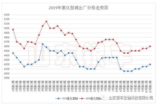 綜合以上原材料信息、廠家心態、市場需求等各層面信息綜合研判,山東銀豐認為:短期之內氯化膽堿將以穩定盤整為主,中期來看隨著上游原料工廠檢修陸續結束,供應寬泛度增加,氯化膽堿市場走勢預期震蕩或偏弱運行。但隨著廠家心態的變化和不同的調整預期,不否認在某一階段市場價格的偏強預期。