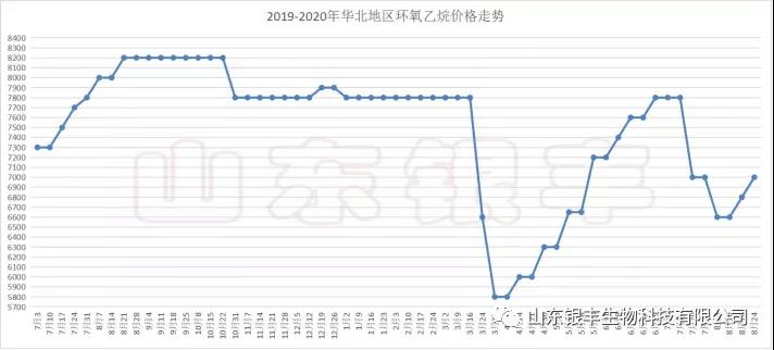 在上一期(8月11日)氯化膽堿行情資訊文章中,筆者判斷:目前氯化膽堿在上游原料價格下跌的帶動下已經進入深度谷底期,基本處在近10年來的最低價格區間,并表示當前的氯化膽堿價位幾無風險,鼓勵廣大客戶大膽買貨。文章推送后,氯化膽堿上游原料環氧乙烷于8月18日、21日及25日接連上漲,漲幅共計600元/噸;三甲胺受廠家停產檢修、競價銷售以及廠家產能向更高利潤品種(一甲胺 二甲胺)傾斜的影響,市場供應量急劇減少,價格大幅跳漲,共同導致氯化膽堿廠家生產負荷大幅降低,發貨極度困難,氯化膽堿價格也在此帶動下“勇攀高峰”,漲到了新高度。