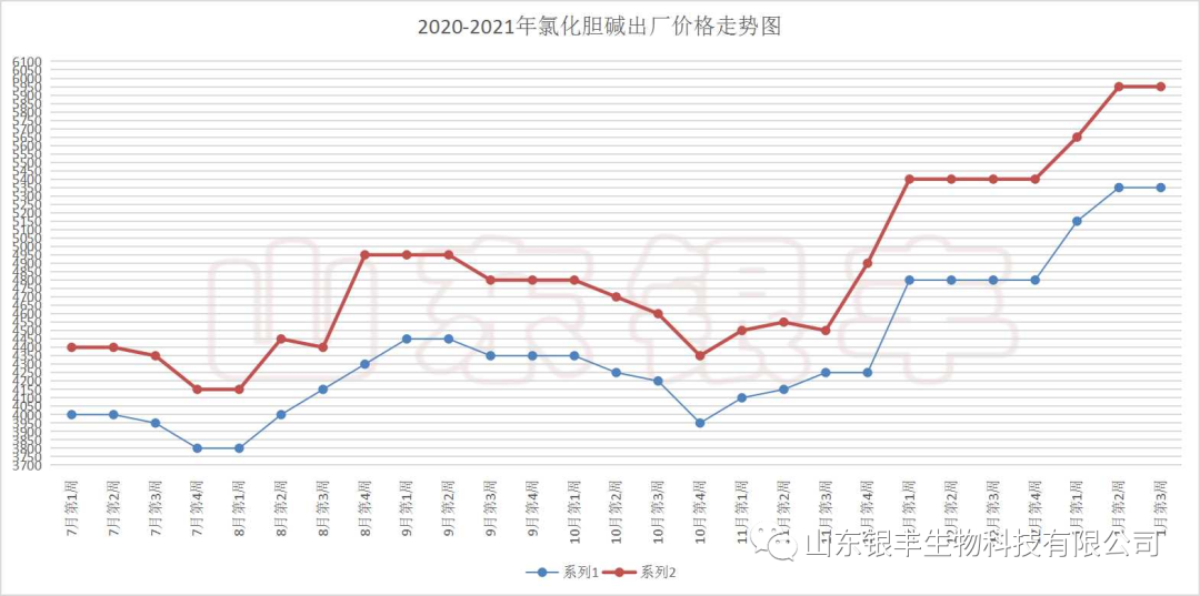 在上一期(2020年12月29日)的氯化膽堿市場資訊文章中,筆者分析認(rèn)為:氯化膽堿價格在春節(jié)之前的這段時間預(yù)計保持堅挺的態(tài)勢運行,易漲難跌,不排除在突發(fā)因素的刺激下,出現(xiàn)大幅上漲的可能。自文章推送之后,氯化膽堿在多方面因素的共同作用下,價格連續(xù)上漲,目前仍呈現(xiàn)堅挺態(tài)勢。距離2021年春節(jié)來臨已經(jīng)不到一個月的時間,全國各地已經(jīng)全面進入春節(jié)備貨階段,本期資訊將分析此階段的價格走勢情況。