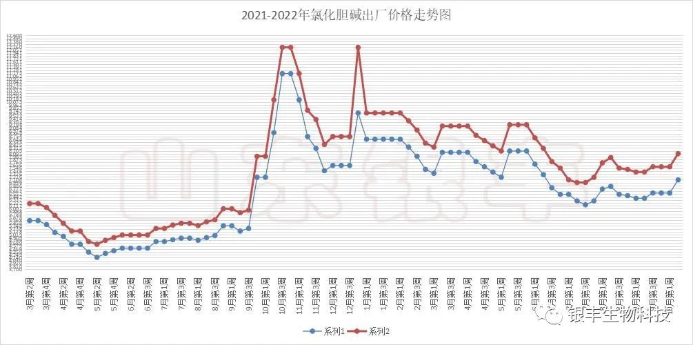 本期銀豐資訊觀點:國慶假期后三甲胺價格跳漲1100元,受成本承壓影響,氯化膽堿廠商平均漲幅每噸500元。短線來看,受重要會議即將召開,疫情嚴格管控,上游原材料緊平衡供應,廠家交付前期大量訂單等各種因素綜合影響,氯化膽堿在短線內維持強勢運行,上行預期明顯,價格難有回落。